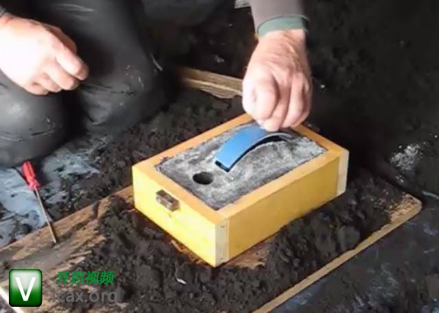 制作绿砂模具时,当不是平坦的表面时,制作分型线。
