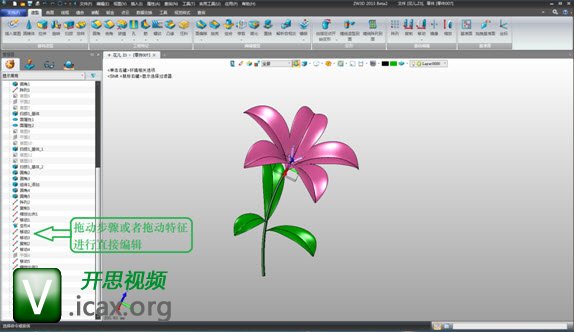 中望3D 2013版产品亮点 1.简易的工作流程和灵活的历史管理器 将工作流程重新组织,提高设计效率,简化设计的复杂程度。重新优化的历史操作管理器,通过拖到即可直接编辑,实现效率新突破。 更多关于 ...